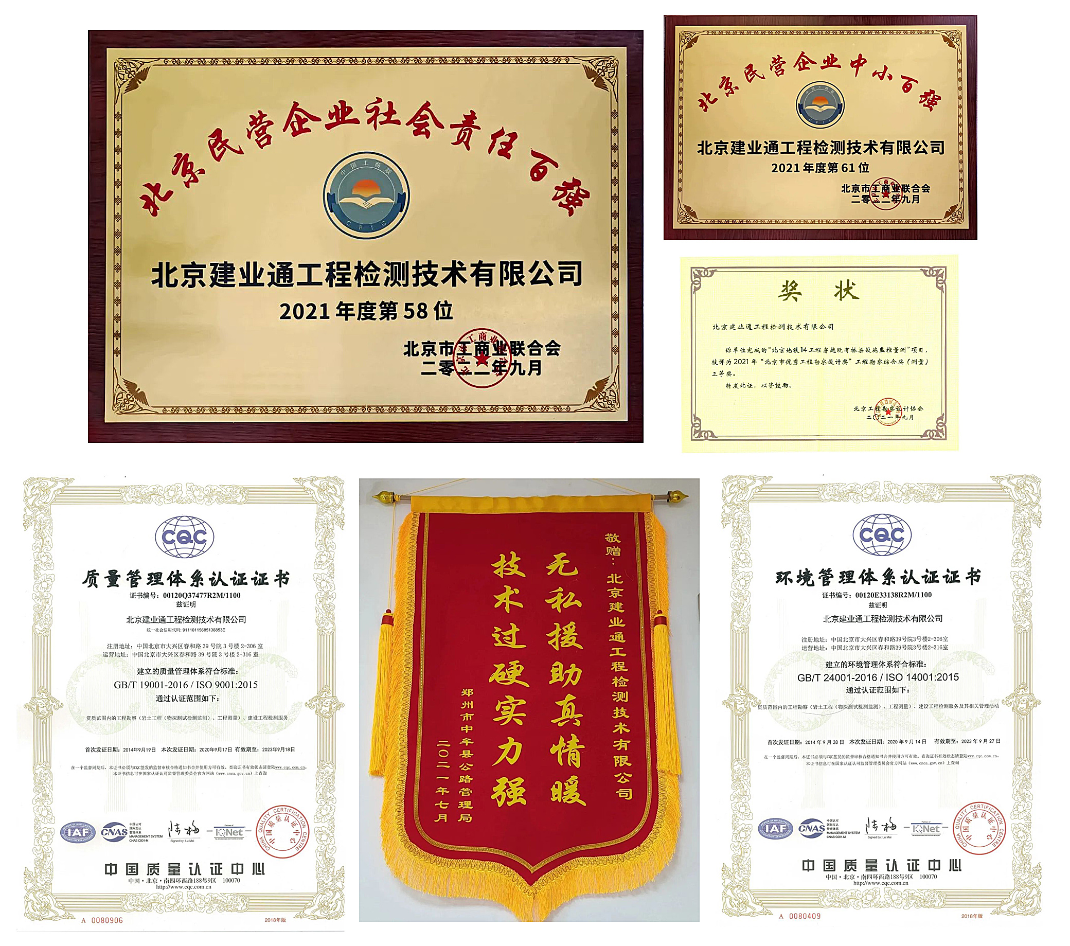 同時(shí),憑借較高的行業(yè)專注度、豐富的科技創(chuàng)新成果、穩(wěn)扎穩(wěn)打的科研能力以及積極履行社會(huì)責(zé)任,北京建業(yè)通在企業(yè)高質(zhì)量發(fā)展方面也取得了諸多成績(jī),榮獲了"北京民營(yíng)企業(yè)中小百強(qiáng)""北京民營(yíng)企業(yè)社會(huì)責(zé)任百強(qiáng)""北京市共鑄誠信企業(yè)"等榮譽(yù),連續(xù)多年被評(píng)為北京市軌道交通工程質(zhì)量檢測(cè)履約先進(jìn)單位、連續(xù)多年獲得北京市城市道路養(yǎng)護(hù)管理中心第三方監(jiān)測(cè)單位評(píng)比第一名的好成績(jī)。
