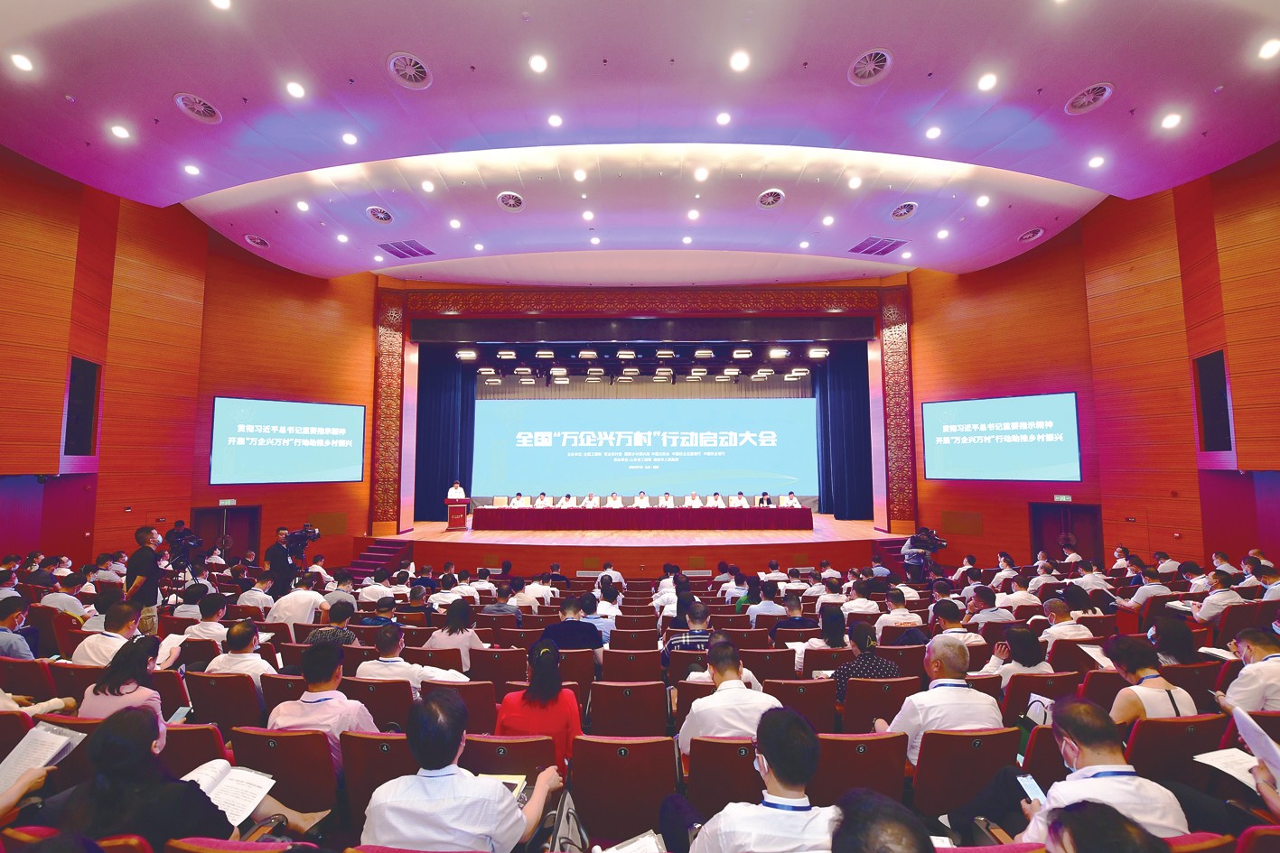 2021年7月16日,全國工商聯(lián)、農(nóng)業(yè)農(nóng)村部、國家鄉(xiāng)村振興局、中國光彩事業(yè)促進會、農(nóng)發(fā)行、農(nóng)行等六單位在山東濰坊共同召開全國“萬企興萬村”行動啟動大會。本報記者張雷/攝